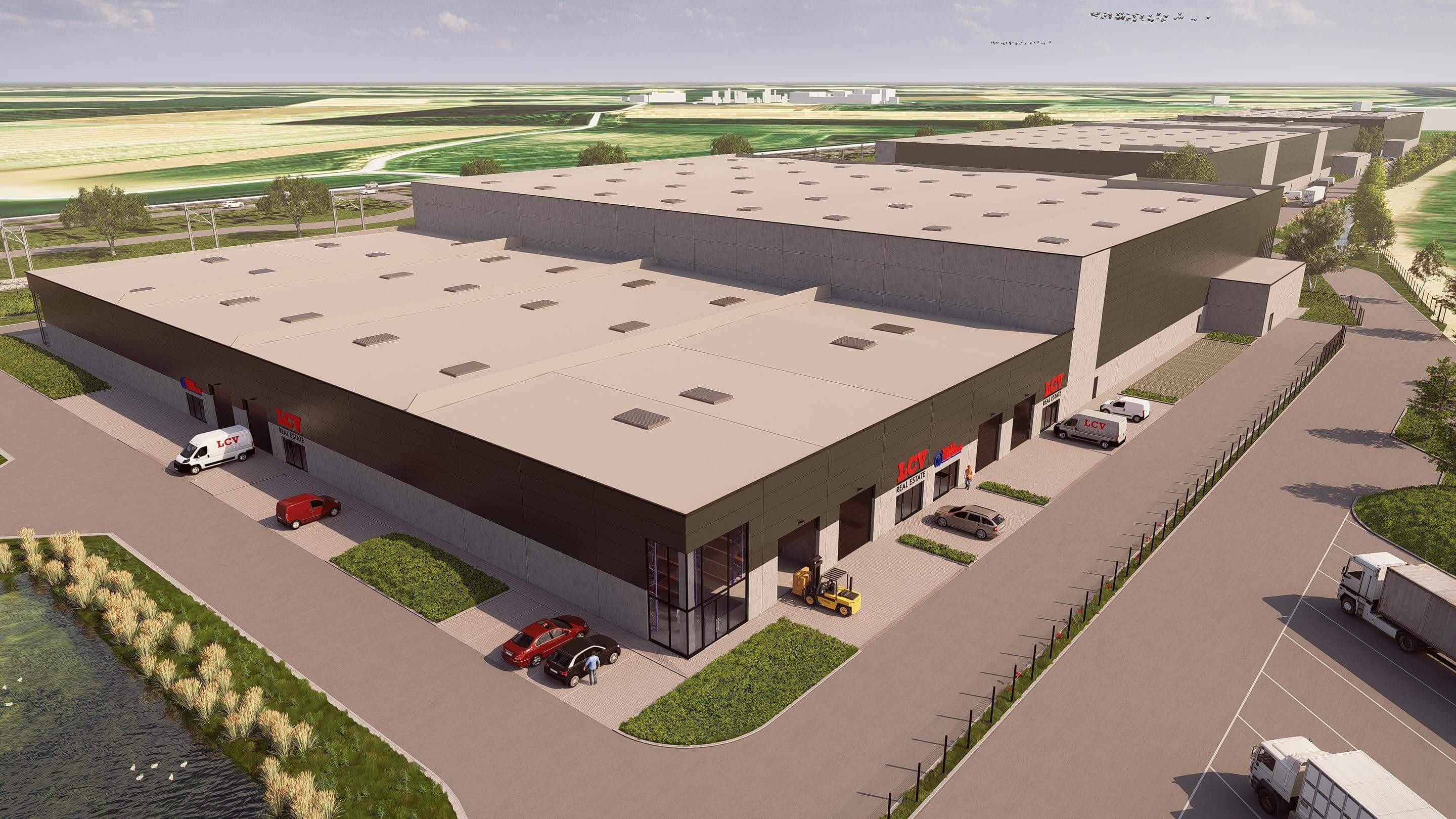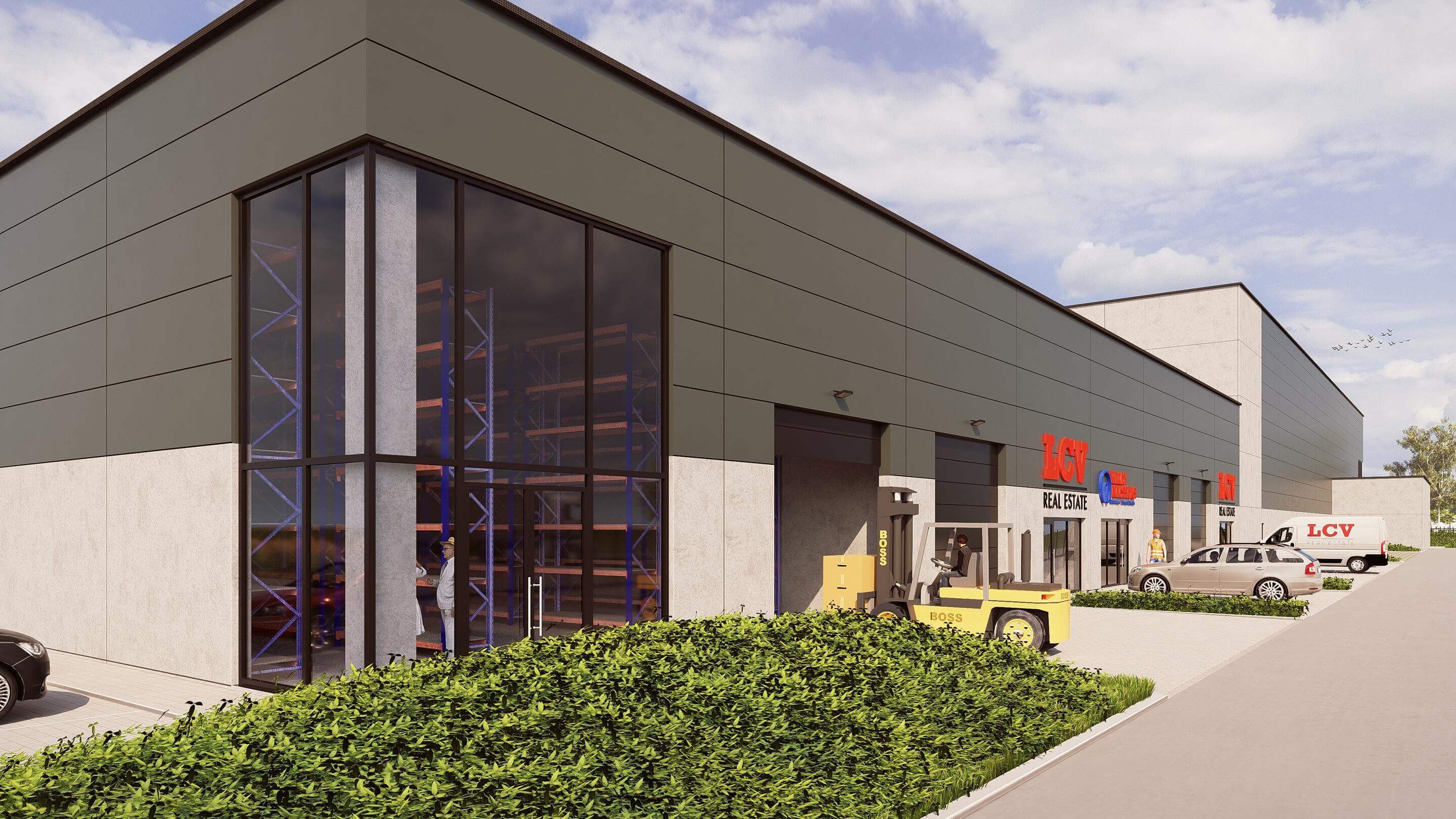 In dit nieuwe bouwproject zijn er zowel loodsen voor logistiek, kantoren en kmo-units ingepland.