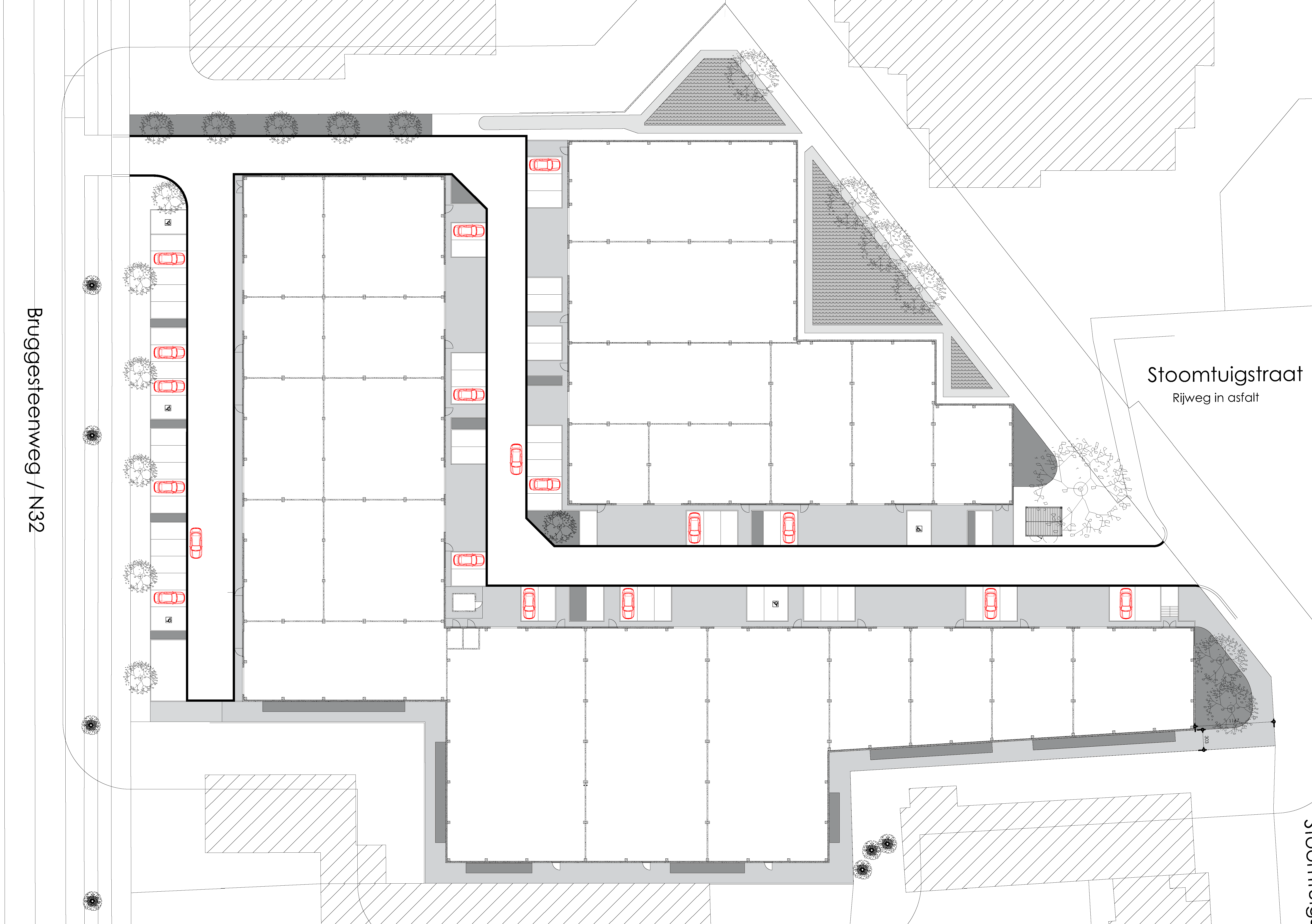 De Bruggesteenweg (N32) is een belangrijke verbindingsas tussen Roeselare, Hooglede en Torhout. Door de ligging langs deze drukbereden invalsweg geniet Bedrijvenpark Steenpoort van maximale visibiliteit en een uitstekende bereikbaarheid voor klanten, leveranciers en medewerkers. De nabijheid van Roeselare versterkt het regionale karakter en maakt het project bijzonder aantrekkelijk voor ondernemingen met een focus op West-Vlaanderen.